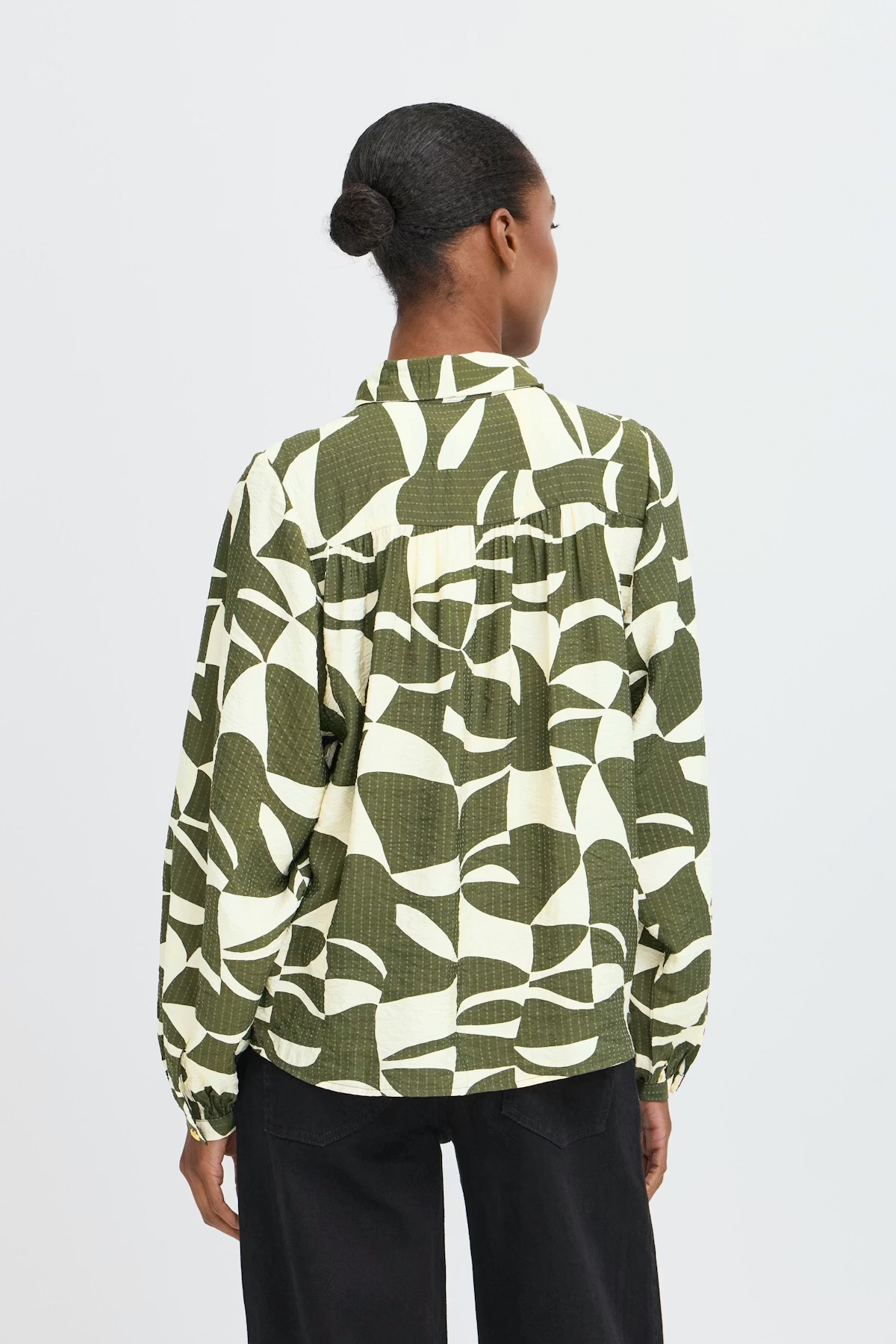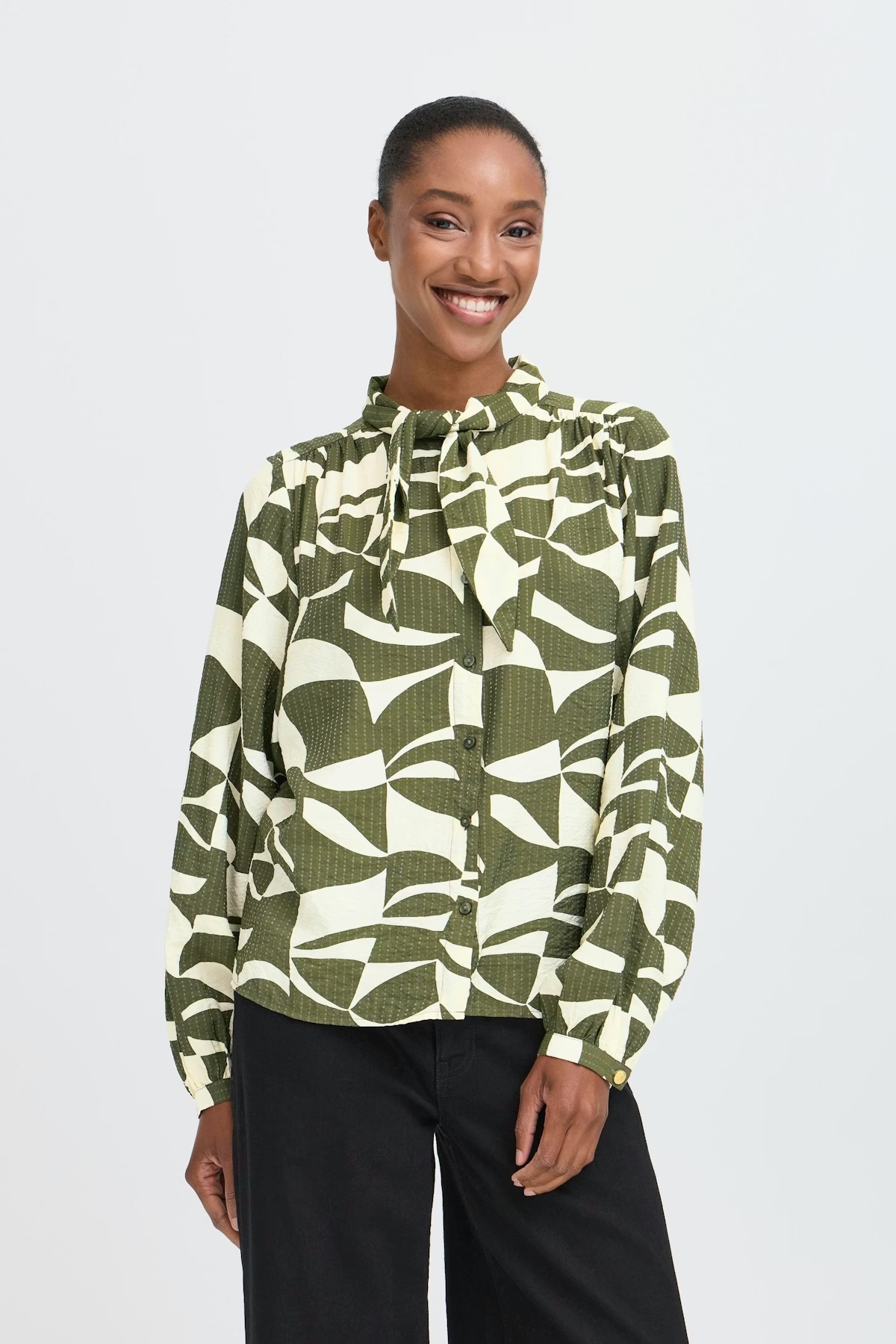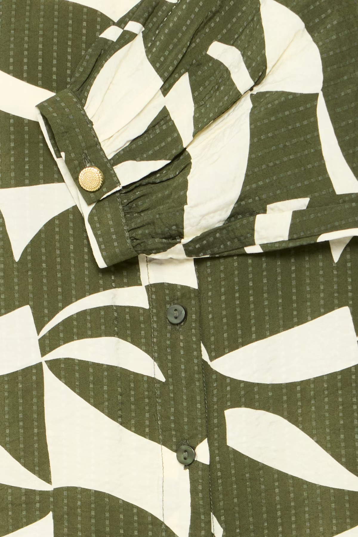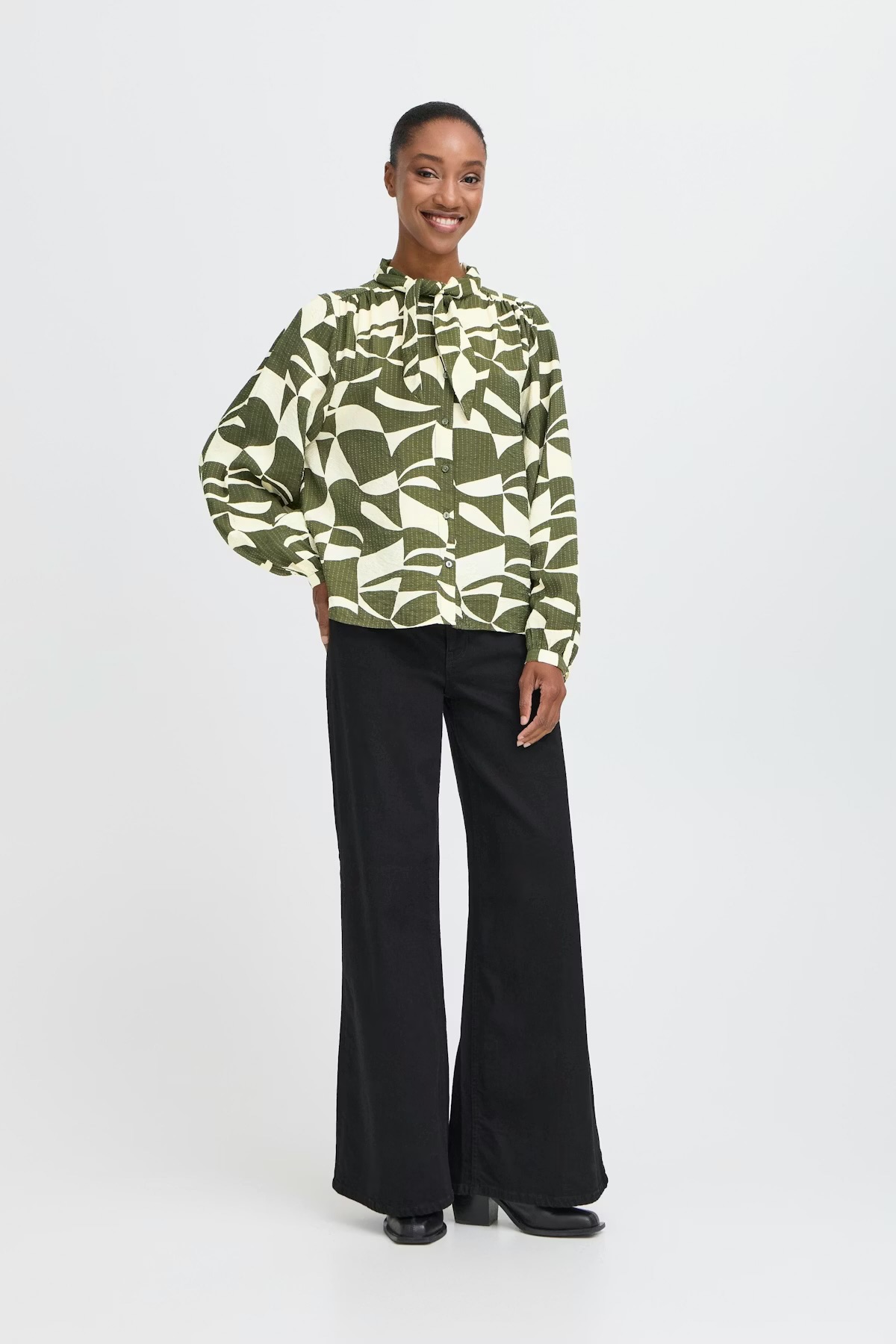 Blusa con corte relajado, con escote de pie, parte delantera abotonada y mangas largas. Silueta cómoda adecuada para múltiples ocasiones.