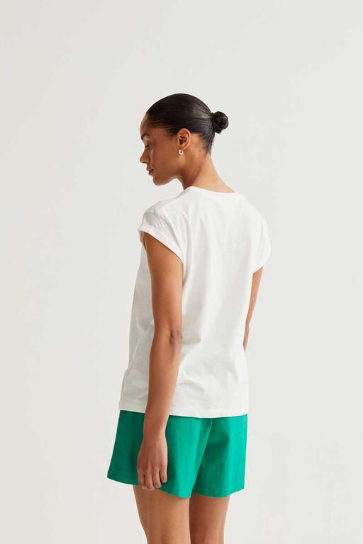 Camiseta de tejido 100% algodón con estampado de conejito. Cuello redondo y manga corta. La modelo mide 173 cm y lleva la talla S.
