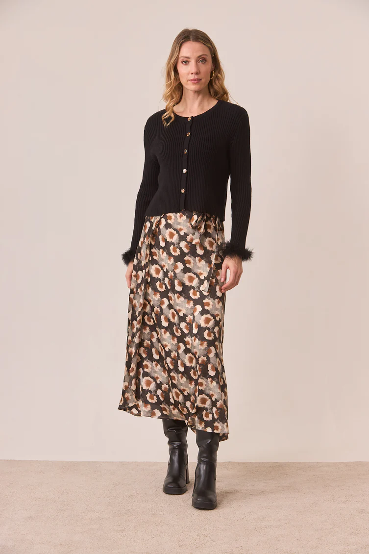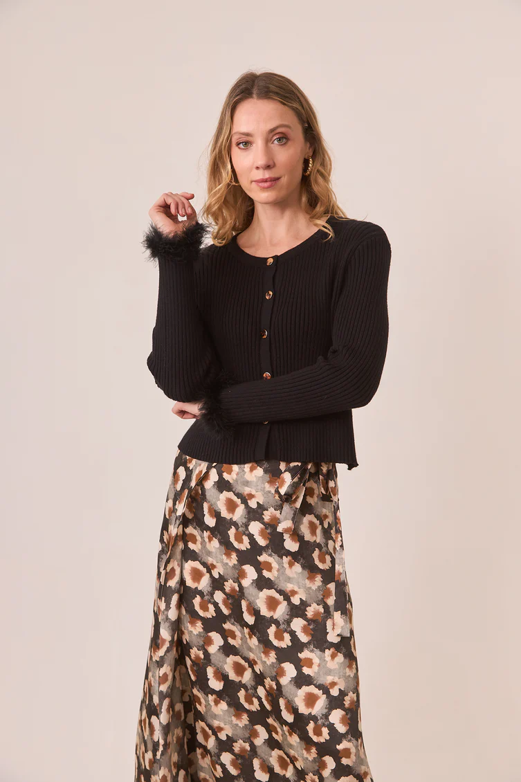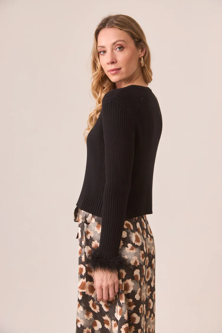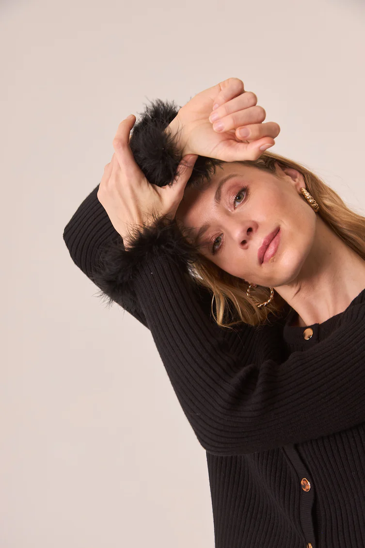 Cárdigan acanalado con botonadura completa. Detalle de pelo en puños.