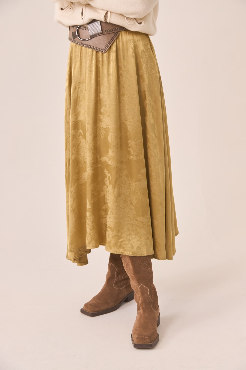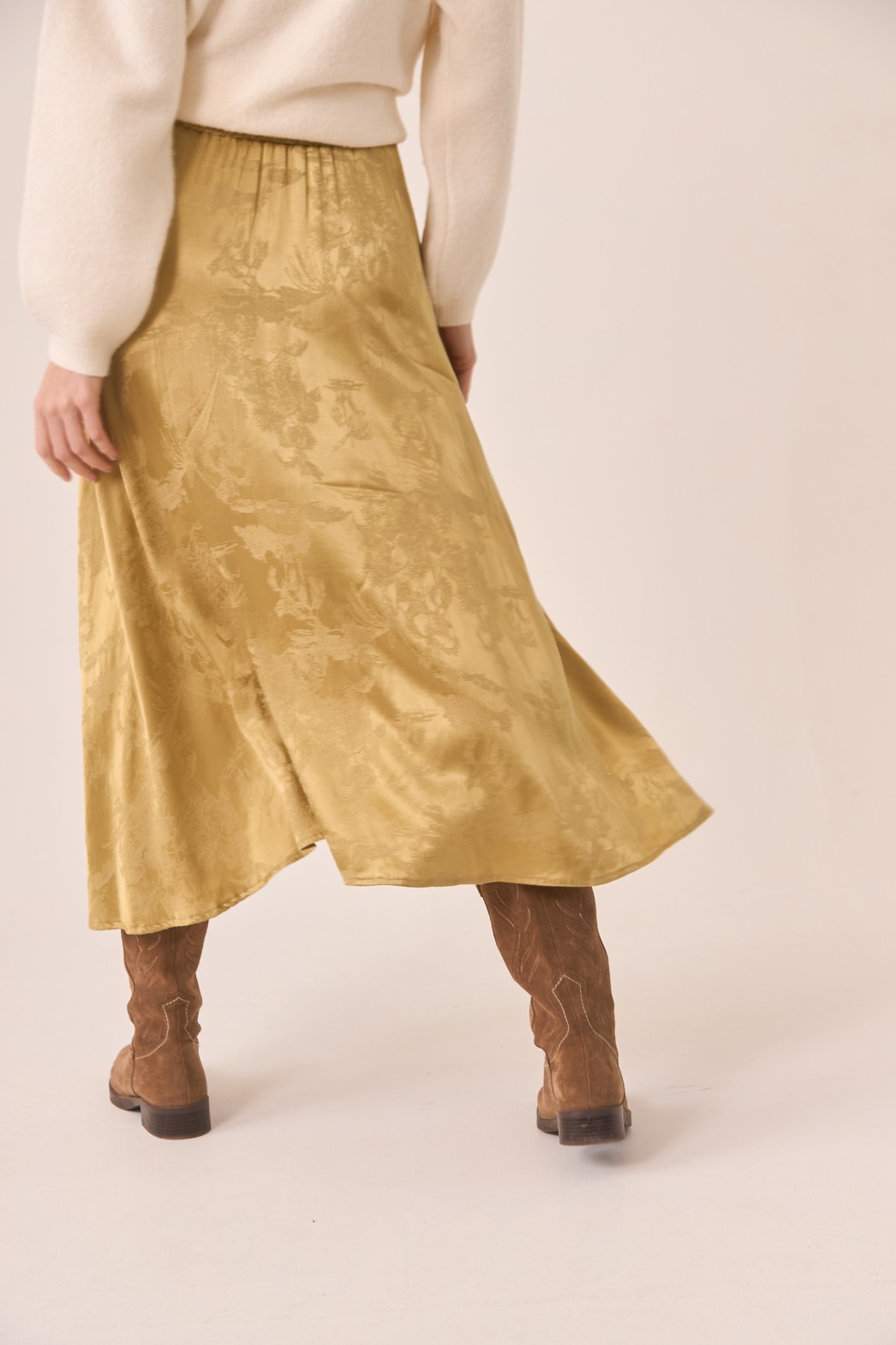 Falda midi en tejido fino satinado estampado.