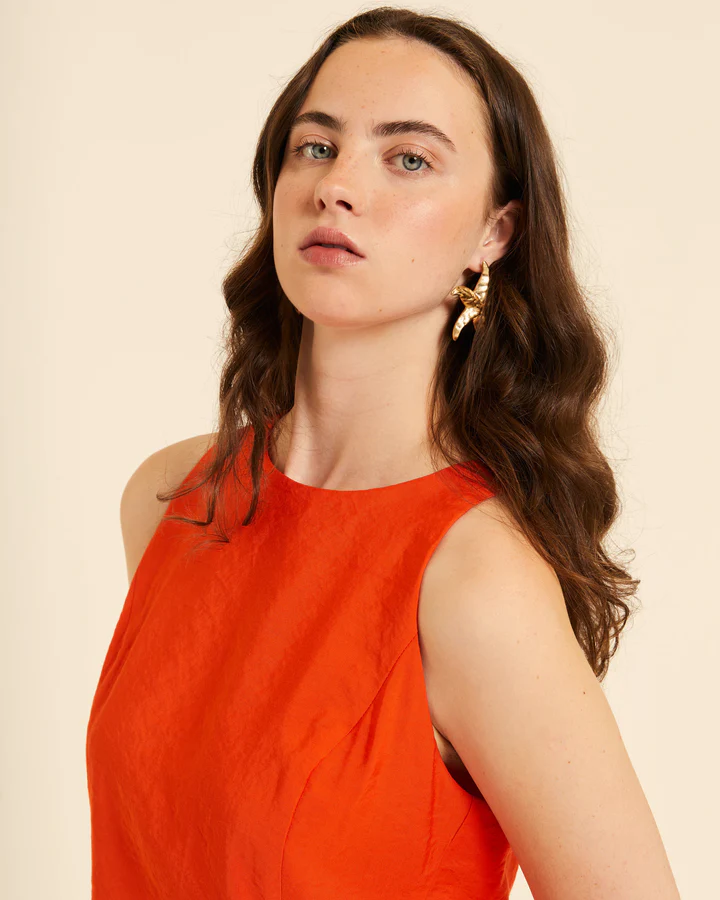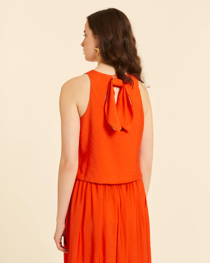Top con lazada en espalda en color rojo coral.