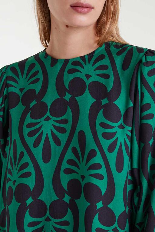 COMPOSICIÓN:100% Viscose | CUIDADO: Lavar a máquina en agua fría, no usar blanqueador, no usar secadora, secar colgado a la sombra, planchado a la temperatura máxima de la placa interior de 110º, lavar con colores similares | Forro: No.